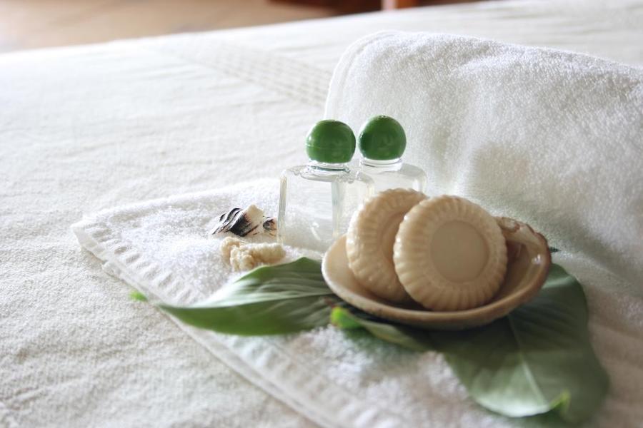 Baño, regadera, cama matrimonial, terraza, hamaca y sala de descanso.
