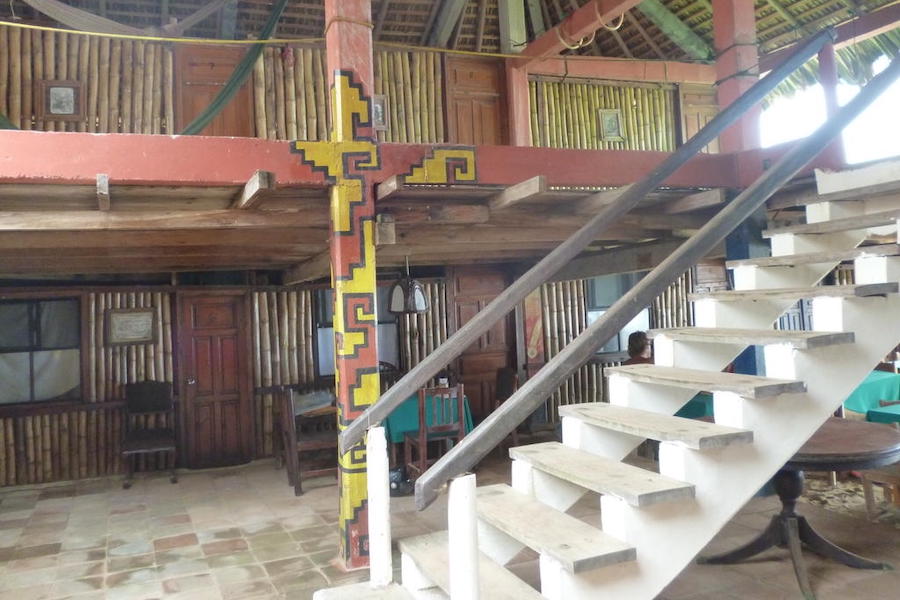 Dos camas matrimoniales, una individual y una hamaca, baño privado y ventilador.